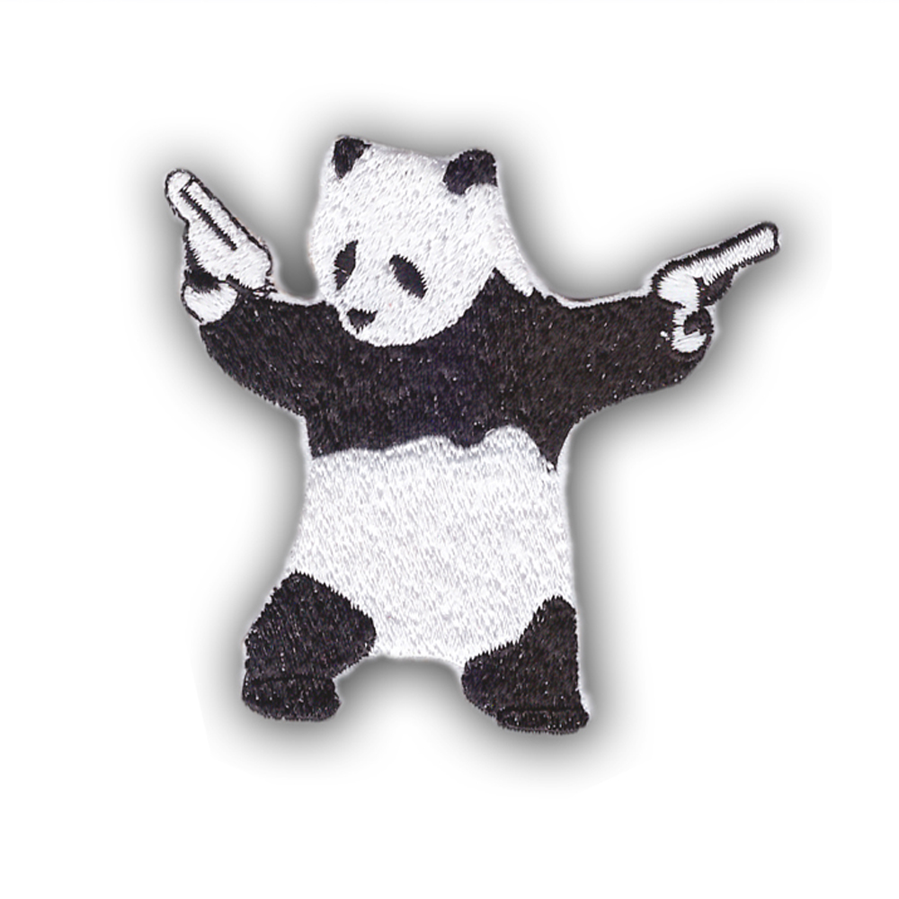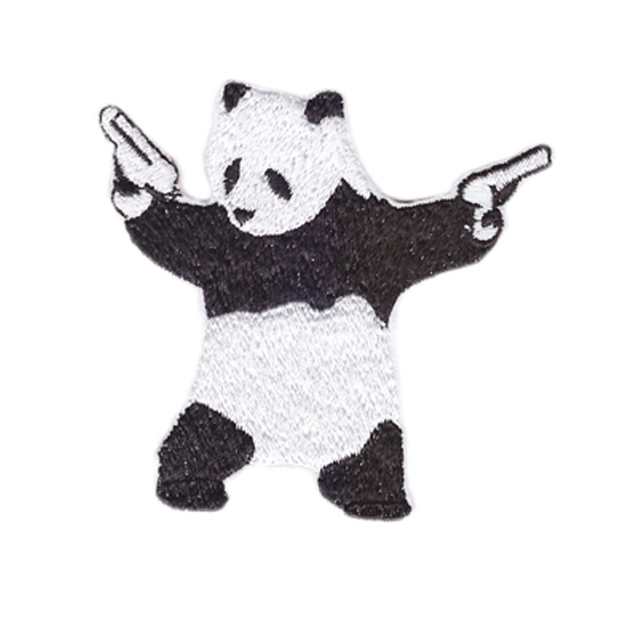 • Title:kung fu PANDA BEAR wielding pistols guns EMBROIDERED IRON-ON PATCH banksy